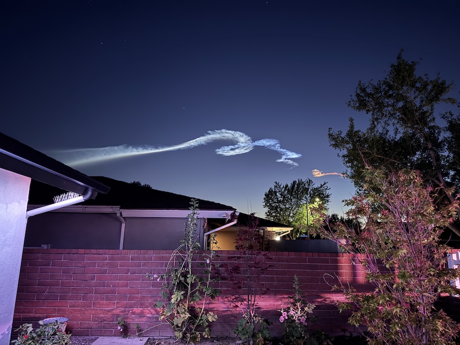 In the backyard, one could see the entire contrail as it drifted southwest!