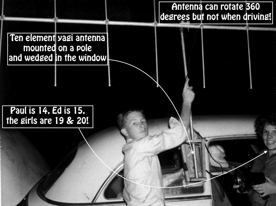Judy was the driver and Paula the navigator. Ed and I turned the antenna, watched the S-Meter, and yelled "Left", "Right", "Straight-Ahead" or whatever!