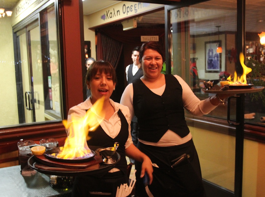 Ah ha... Saganaki is being served....