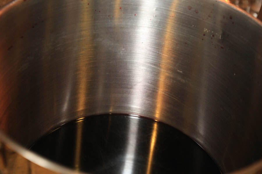 The hot mulled wine is removed from the stove