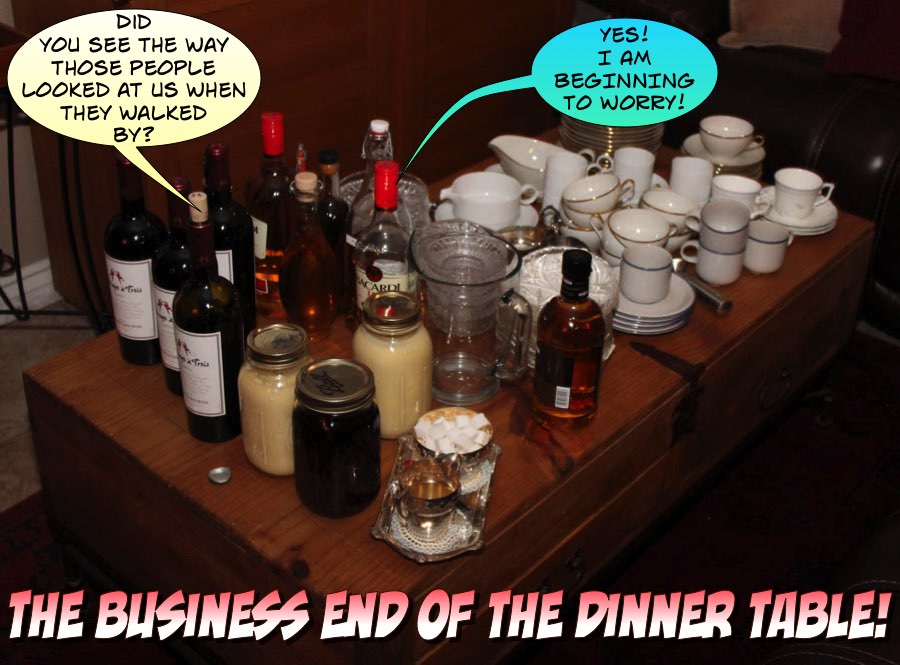 We were still visiting and then dinner announcement was made. Mad dash to the kitchen! The main event is soon to come! Flaming sugar and mulled wine - Feuerzangenbowle!