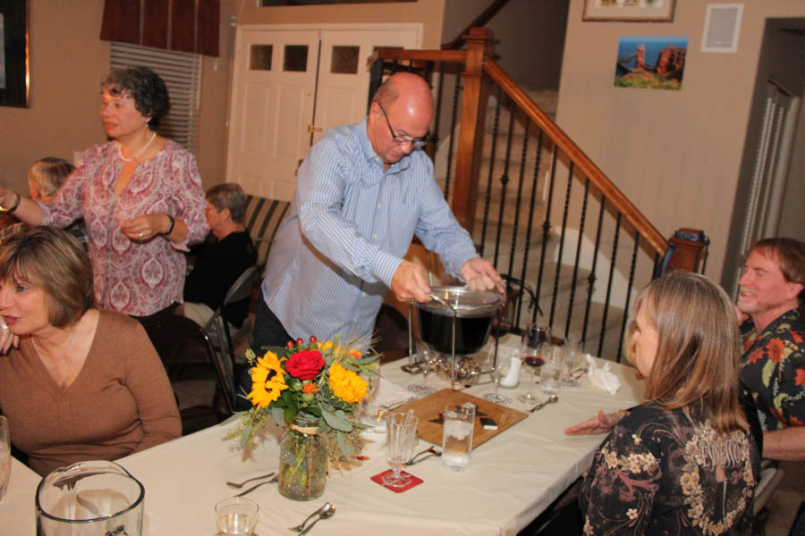 Hans moves the mulled wine into the dining area and into the pots