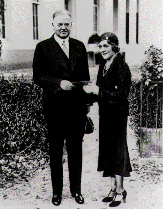U.S. President Herbert Hoover and film star Mary Pickford. 1931-25A: Mary Pickford gives President Hoover a ticket for a film industry benefit for the unemployed, November 12, 1931