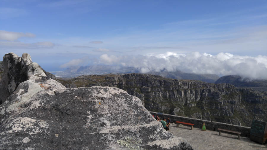 People walking around the top of Table Mountain