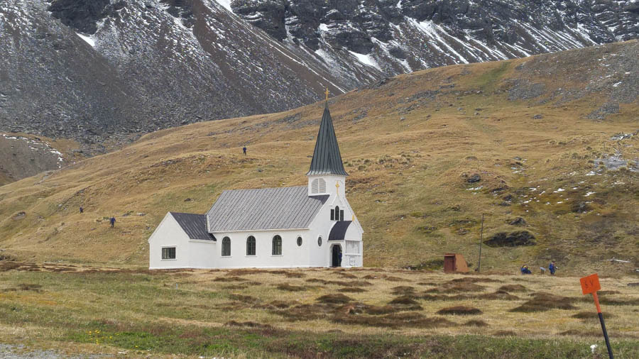 The Neo-Gothic church was pre-built in Norway and erected in Grytviken by whalers led by Carl Anton Larsen around 1912-1913 and consecrated on Christmas Day 1913.