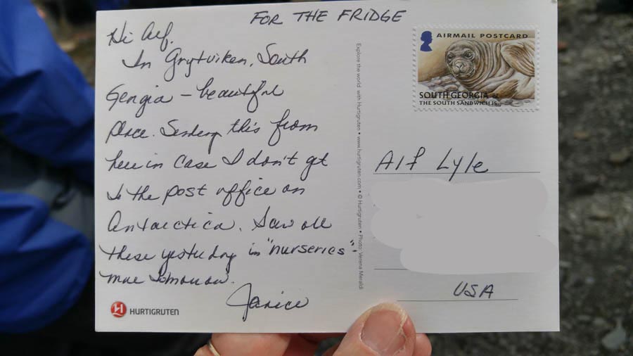 For the fridge or put in the fridge! - Notice the South Georgia stamp of a seal. And I didn't make it to the post office at Port Lockroy, Antarctica because it was iced in!