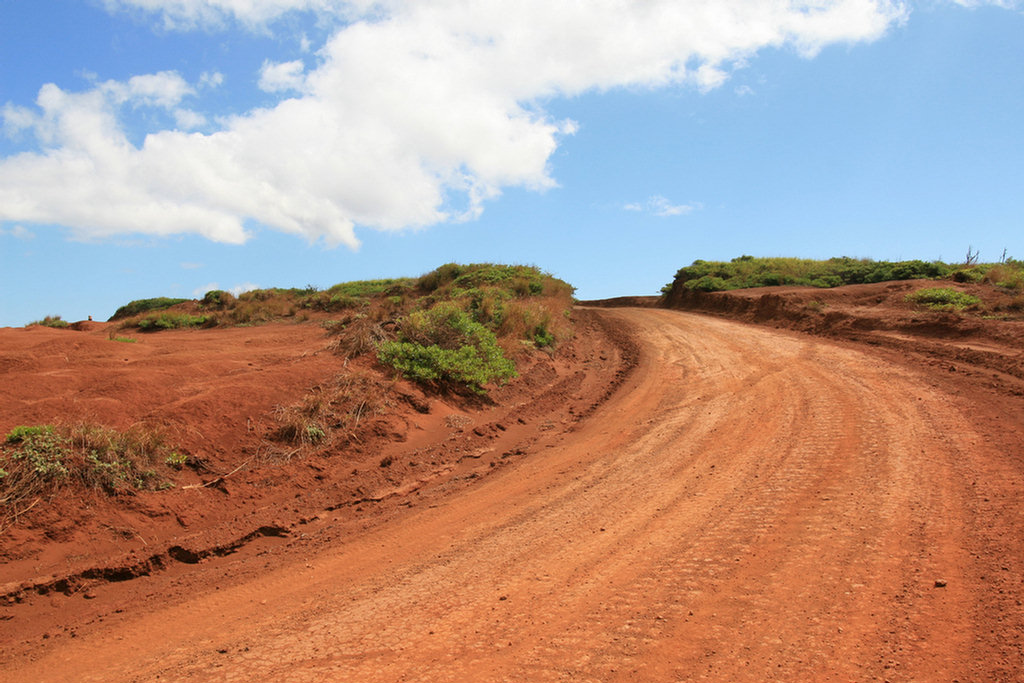 Heading out means down a dusty red road!