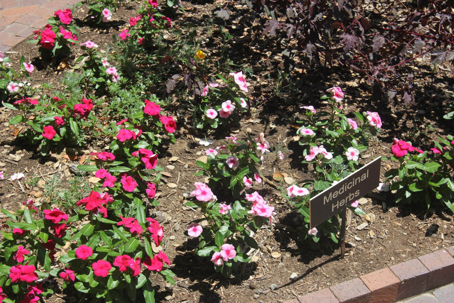 Located between the Huntington Art Gallery and the Virginia Steele Scott Gallery and connecting to the Rose Garden, the Shakespeare Garden features a broad variety of plants; some cultivated in England during Shakespeare's time, some mentioned in his plays and sonnets, plus many whose ancestors trace back to plants of his Renaissance writings.