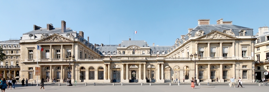 Did You Know? - The Palais-Royal, originally called the Palais-Cardinal, is a palace located in the 1st arrondissement* of Paris. The screened entrance court faces the Place du Palais-Royal, opposite the Louvre. The larger inner courtyard, the Cour d'Honneur, has since 1986 contained Daniel Buren's site-specific art piece Les Deux Plateaux, known as Les Colonnes de Buren.