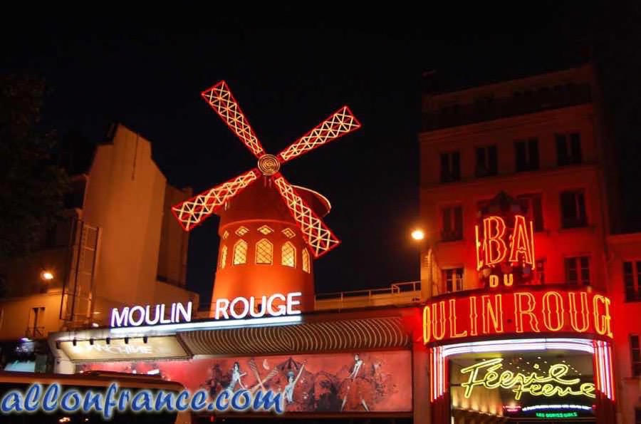The original house, which burned down in 1915, was co-founded in 1889 by Charles Zidler and Joseph Oller, who also owned the Paris Olympia. Close to Montmartre in the Paris district of Pigalle on Boulevard de Clichy in the 18th arrondissement, it is marked by the red windmill on its roof. The closest métro station is Blanche.