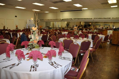 The Garden Pavilion is a flexible banquet room, that can be utilized as one large room, accommodating up to 150 guests, seated at tables. A mirrored wall adds depth and grandeur to the room. The room has a portable bar. The Garden Pavilion can also be divided into two or three rooms for smaller events. Parking and restrooms are conveniently located adjacent to the Garden Pavilion.