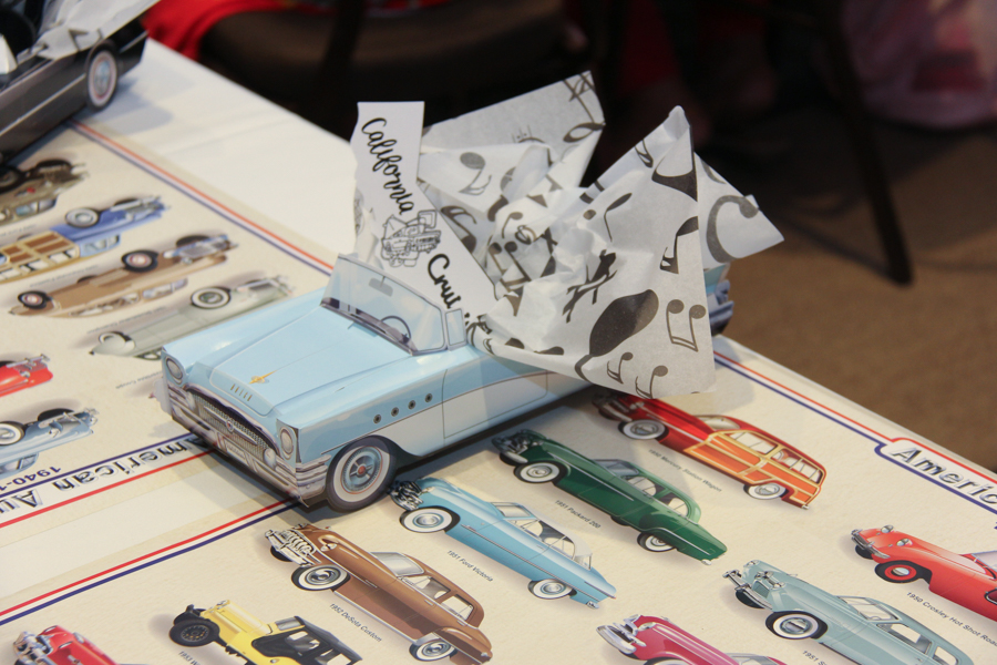 Vicky brought a collection of 1950s-1960s paper autos for our decorations!