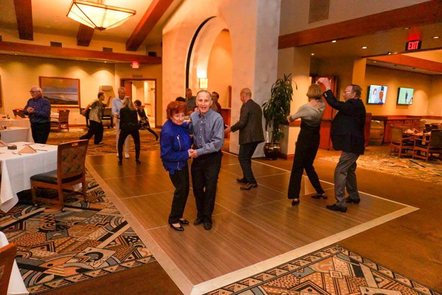 Sunday, the day to rest, and we did. We had tickets to see the Kingston Trio, but Sue’s meds are still not regulated in her system, so we skipped the theater and watched TV. We did go to the monthly dinner dance at Old Ranch. That is always fun, and we get to visit 30 of our dear friends while having an excellent meal and dancing to live music.
