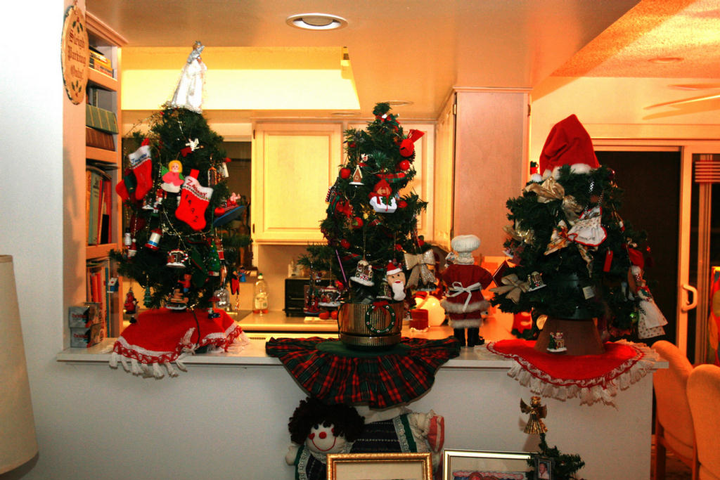 This year, Santa got a baffy in the sink and got scrubbed up prettywell since he had been flying over the house for almost ten years! Helooks pretty happy to us!