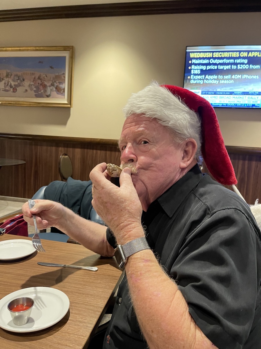 December 19th, we dropped Colleen off at Joe's and Joe is taking her to LAX. We then did our Santa-thing and dropped off "Meals On Wheels" to some friends who are od ill-health or otherwise shut-in before going to the American Legion on Balboa Island for lunch and finally home to watch Christmas movies!