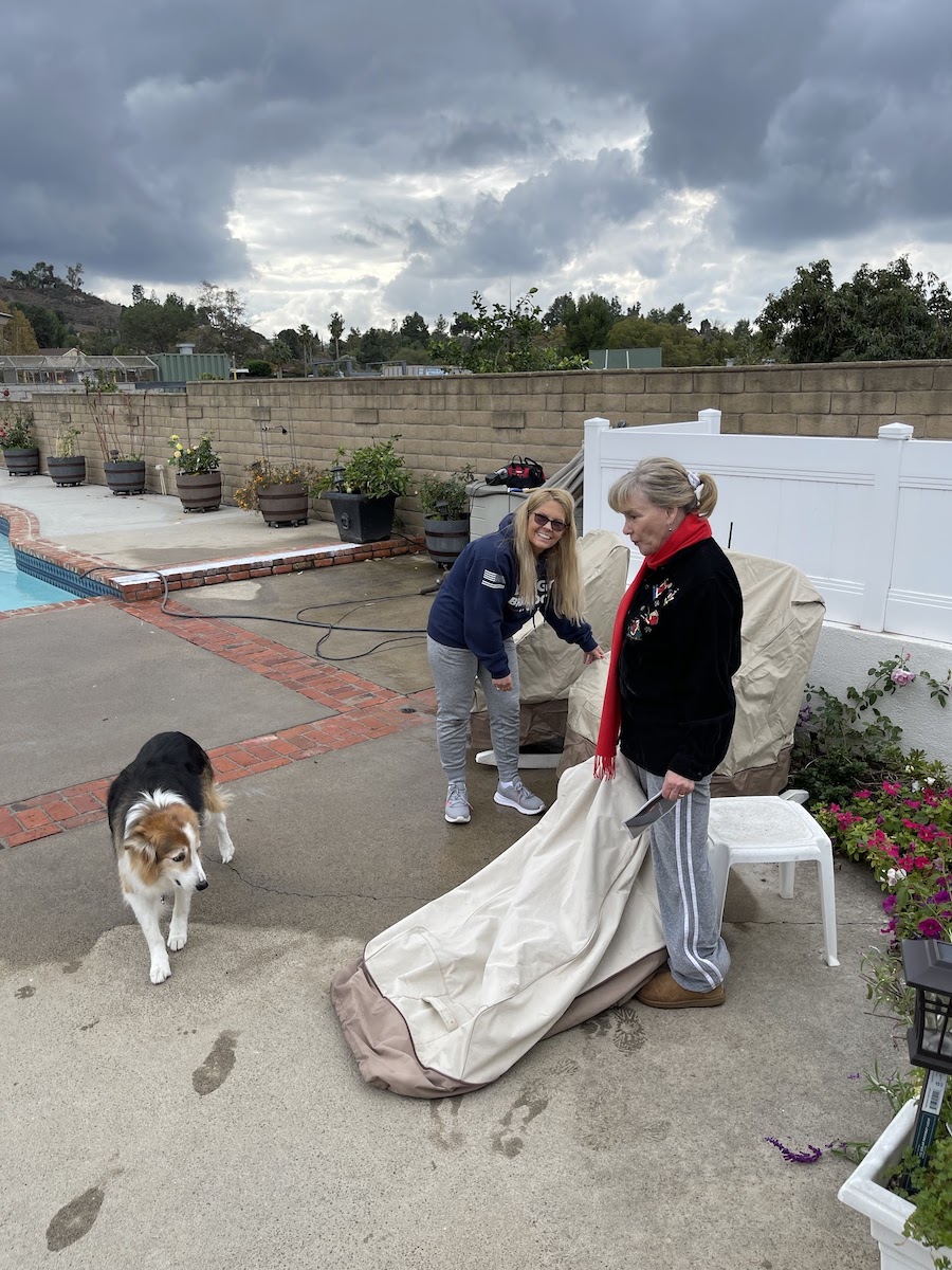 December 13th we were invited to dinner at the Capp's beautiful home in Newport Beach. The Ash's were also there and we had an enchanting evening. But first we had to fasten everything down, a storm is coming!