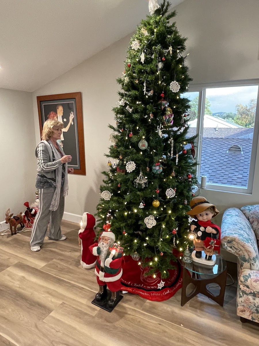 December 17th Colleen visited her Mom, we went to the Nixon Library, and we finished the tree and got ready for my surprise birthday party on Saturday!