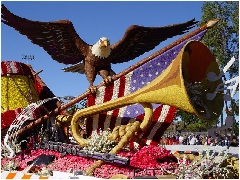 Led by legendary composer/conductor Grand Marshal John Williams, the 2004 Rose Parade celebrated the universal language with the theme “Music Music Music”. For the first time in aviation history, three Air Force stealth aircraft (B-2 Spirit, F-117A Nighthawk and F/A-22 Raptor) flew in formation with a historic appearance at the Rose Parade and another at the Rose Bowl Game.