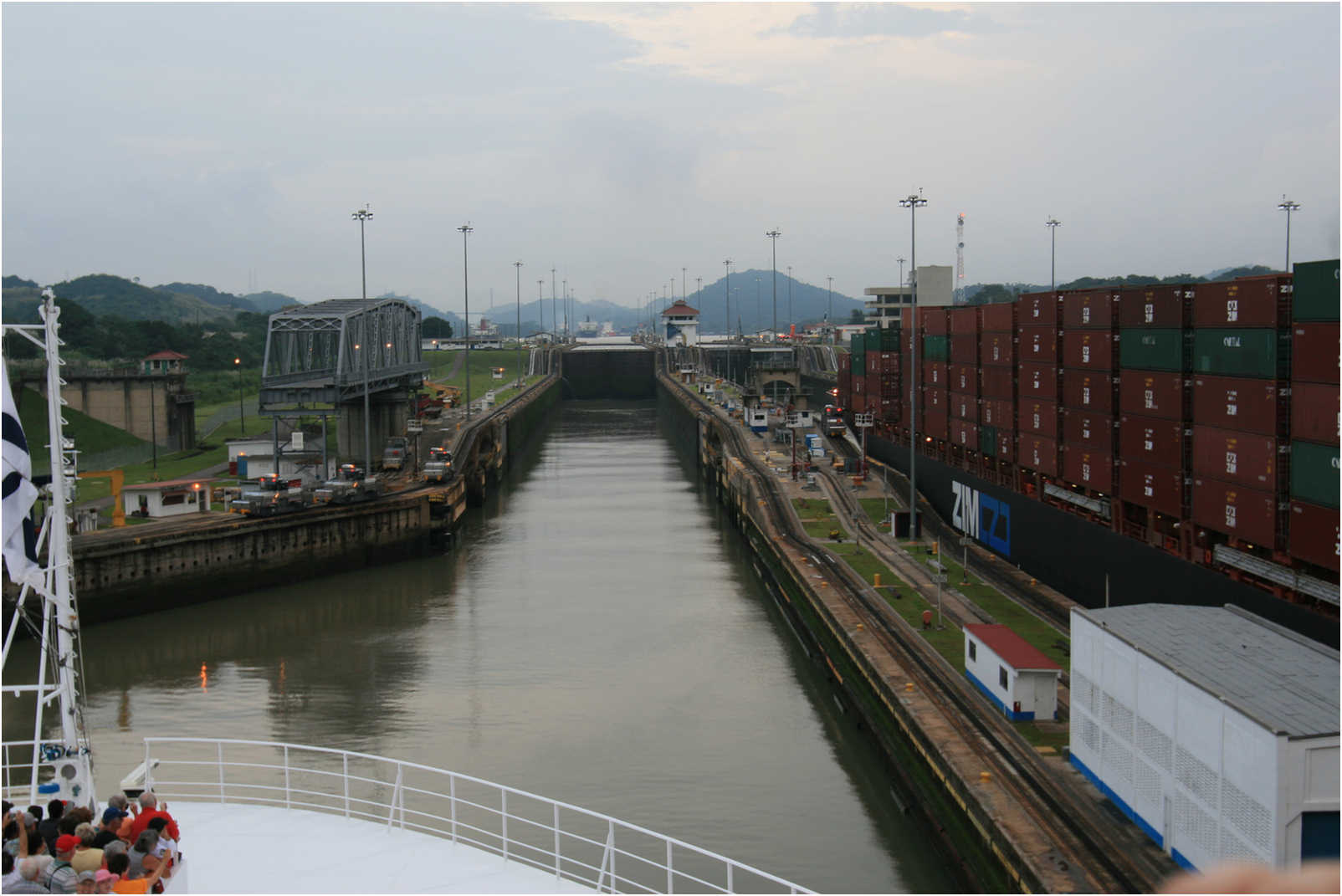 We entered the canal early early in the morning.. around 4 am. The traffic that day was heavy with almost 50 ships making the transition between oceans.
