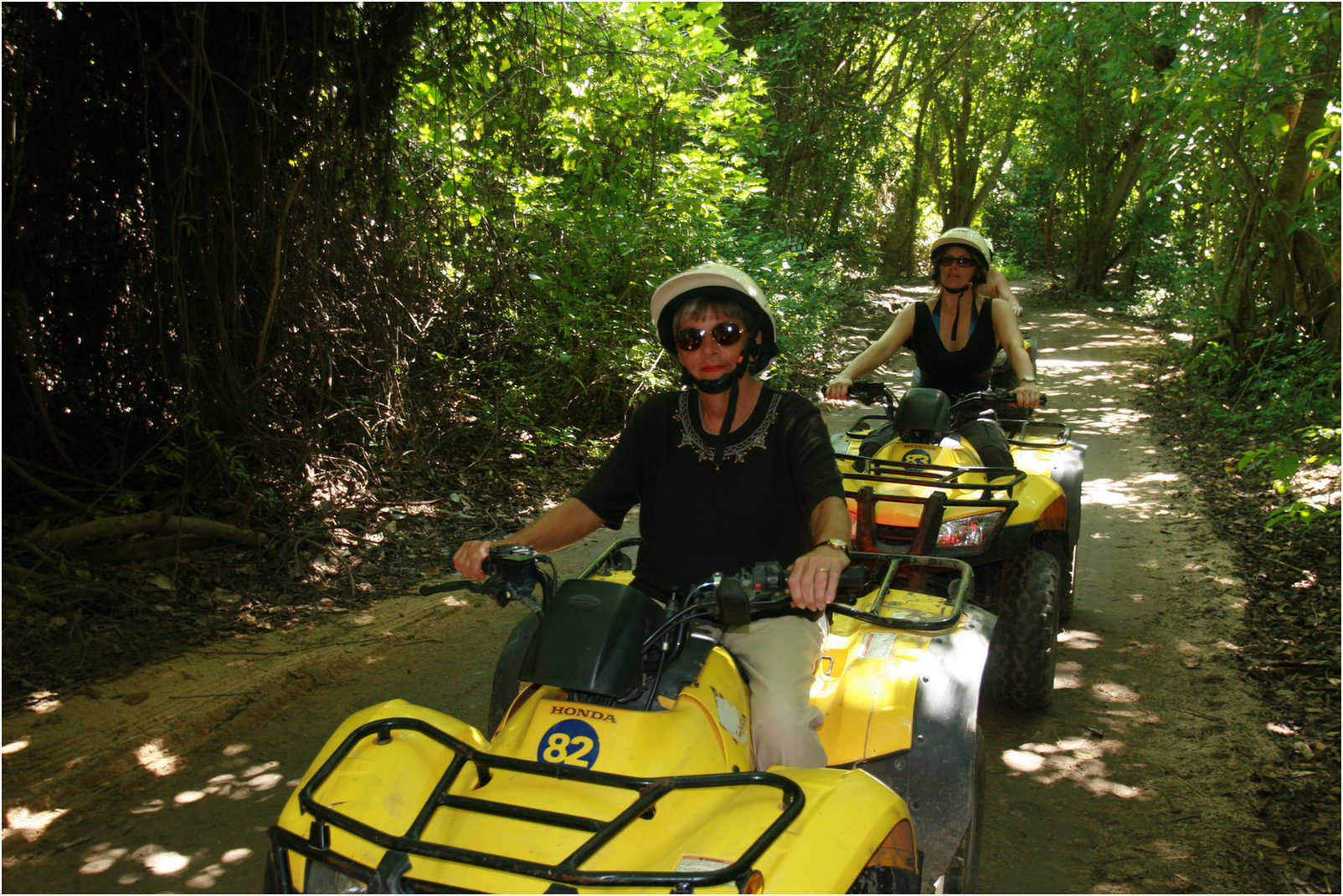 Hot rod Sue takes to the jungle with the trusty ATV and her side kick, Paul. We drove 22 miles through the jungle to get to a great beach on one of the may coves in the area. We landed at Bahia Tangolunda and ATV'ed over to Playa Consuelo on off-road jungle paths!