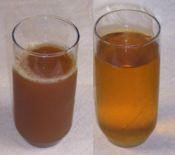 beverage produced from apples by a process of pressing. It is more sour and cloudy than conventional apple juice, retaining