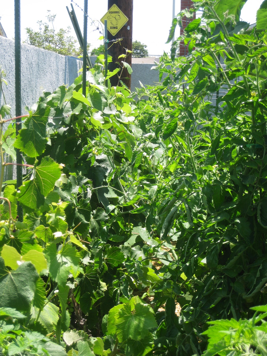 In side south-side yard the tomatoes are going well