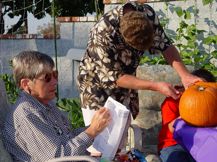 We all gather again for another serious pumpkin carving activity. Great fun with family and friends. After it's over, we gead out for dinner locally.
